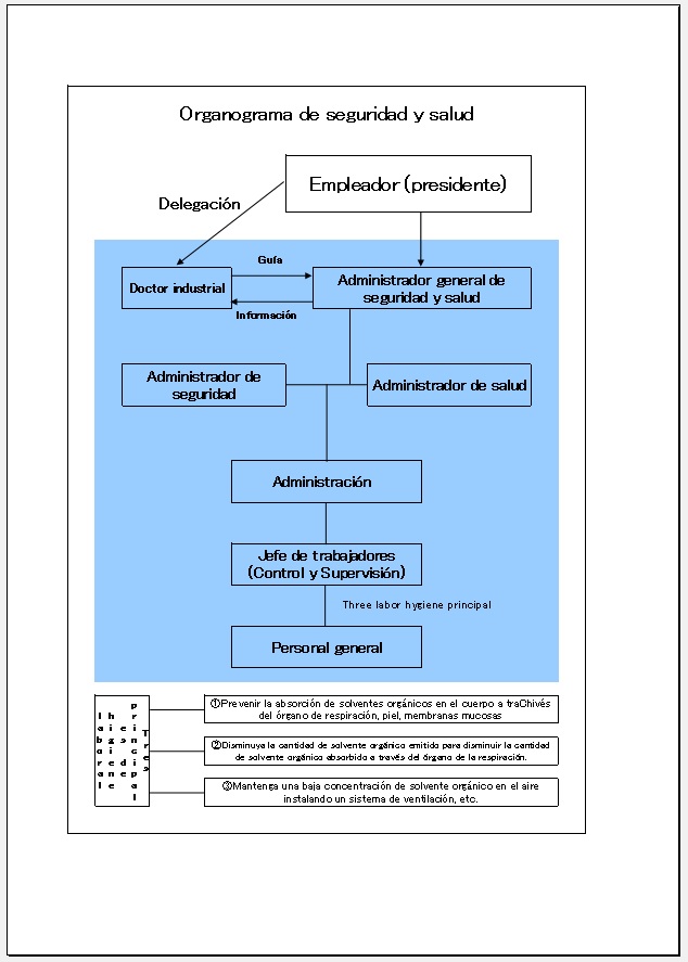 Es para prevenir el accidente en el trabajo, avanzando el avance de la salud al continuar con el avance de la gestión de la seguridad y la salud y para formar la atmósfera cómoda en el lugar de trabajo mediante una serie de ciclo PDCA "Plan-Do-Check-Act" bajo estrecha cooperación mutua entre trabajo y gerencia.